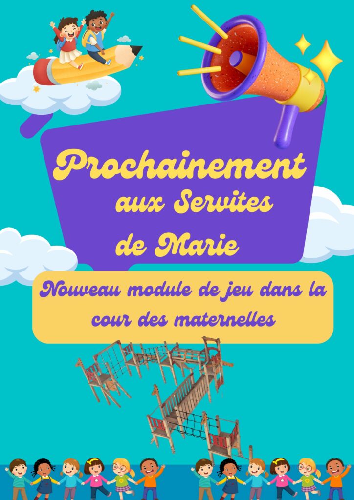L’Association des Parents a financé l’année dernière des aménagements et des jeux dans les cours de l’école : un mur d’escalade, une table de ping-pong, un kicker, etc. Cette année, le projet est plus ambitieux puisqu’il s’agit d’un module de jeux de plus de 80m² acheté par l’AP.